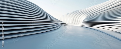 The watermark will not be included on Canvas Print.: Abstract empty white interior with wavy structures and concrete floor