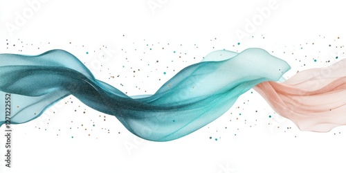 The watermark will not be included on Canvas Print.: Abstract flowing wave of jade and cerulean fabric with sparkling glitter, digital art