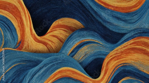 The watermark will not be included on Canvas Print.: Abstract flowing waves in blue and orange textures on canvas