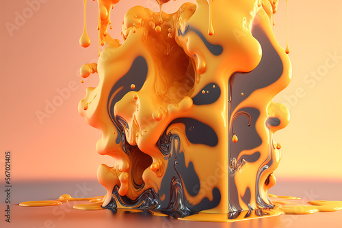 The watermark will not be included on Canvas Print.: Abstract fluid yellow background with interlaced 3d distortion effect - futuristic liquid design - ret