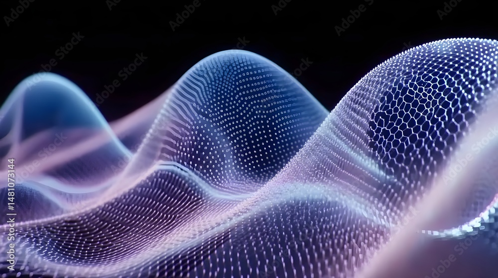 The watermark will not be included on Canvas Print.: Abstract futuristic background with blue and purple gradient waves