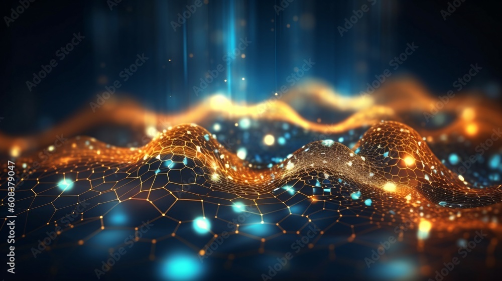 The watermark will not be included on Canvas Print.: Abstract futuristic background with glowing neon lines - generative ai