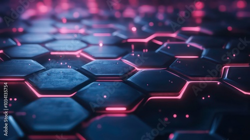 The watermark will not be included on Canvas Print.: Abstract futuristic background with glowing pink hexagon shapes -