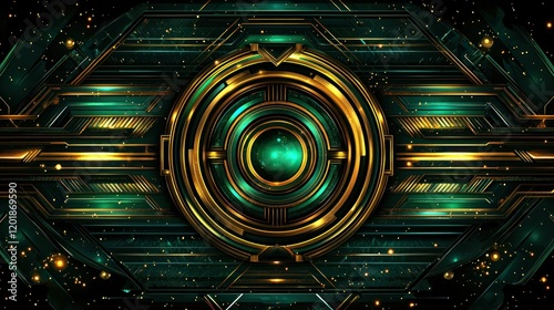 The watermark will not be included on Canvas Print.: Abstract futuristic emerald and gold technology interface