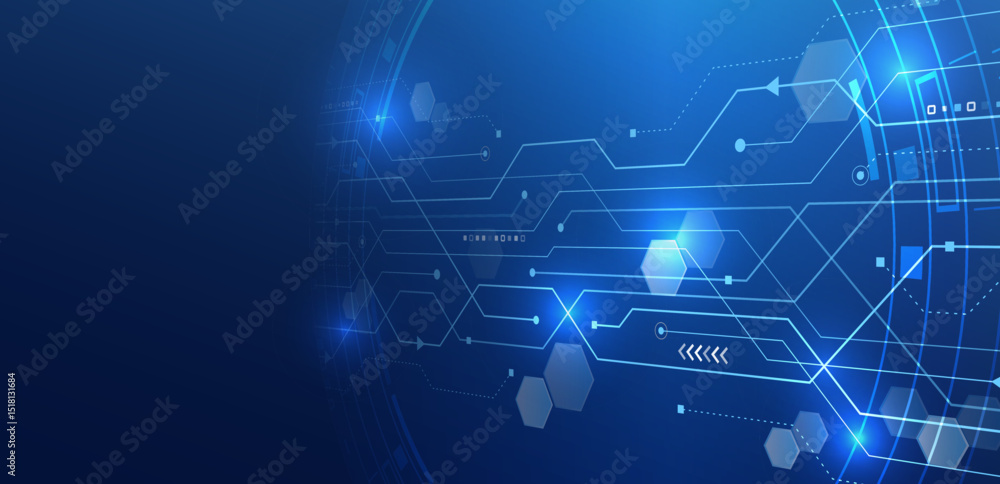 Canvas Prints abstract futuristic technology background with hexagonal shapes, glowing circuit lines, and digital