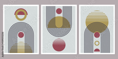 Canvas Prints abstract geometric art with arch and circles. modern boho background. line arc shapes, sun design. c