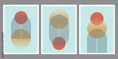 Canvas Prints abstract geometric art with arch and circles. modern boho background. line arc shapes, sun design. c