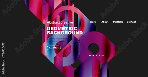 The watermark will not be included on Canvas Print.: Abstract geometric design - vibrant colors, flowing shapes, website header with navigation options - m