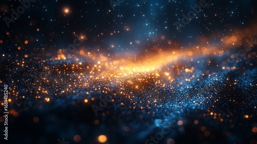 The watermark will not be included on Canvas Print.: Abstract glitter background with glowing particles