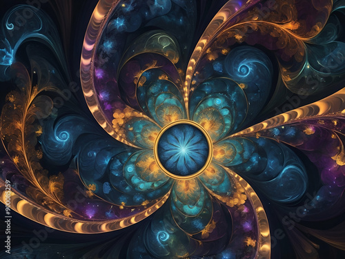 Canvas Prints abstract glowing fantasy fractal concentric circle and wave flower
