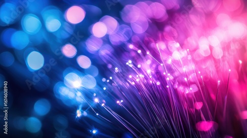 The watermark will not be included on Canvas Print.: Abstract glowing fiber background with colorful bokeh effect