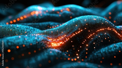 The watermark will not be included on Canvas Print.: Abstract glowing teal and orange particle wave landscape -