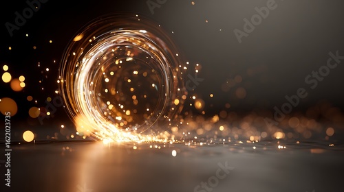 The watermark will not be included on Canvas Print.: Abstract golden light circle with sparkling particles and motion blur effect, creating a magical and