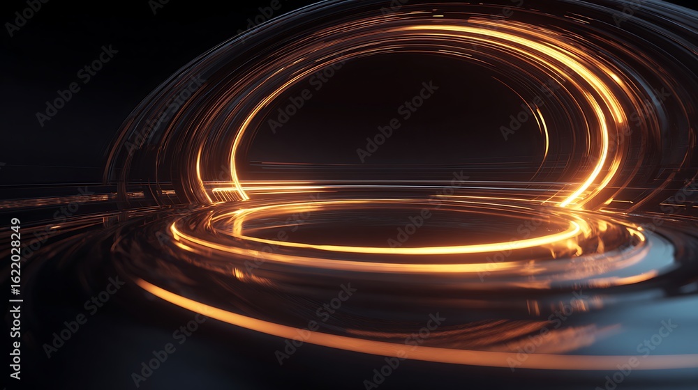 The watermark will not be included on Canvas Print.: Abstract golden spiral with dark background creates a futuristic and artistic digital design for mod