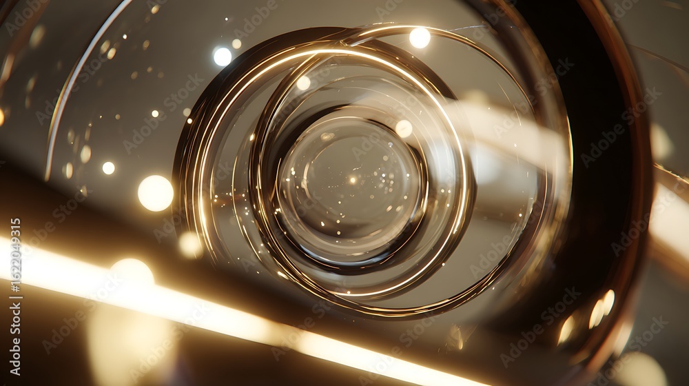The watermark will not be included on Canvas Print.: Abstract golden tunnel with spiral rings creating a futuristic and modern background for graphic des