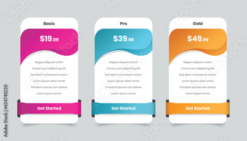 The watermark will not be included on Canvas Print.: Abstract gradient pricing comparison table web and mobile app ui element