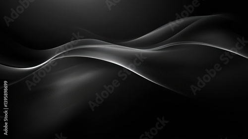 The watermark will not be included on Canvas Print.: Abstract grayscale flowing wave design on black background -