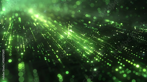 The watermark will not be included on Canvas Print.: Abstract green background with glowing lines and particles -