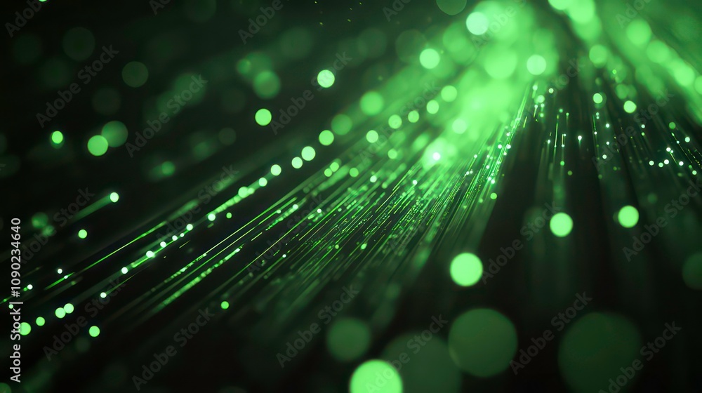 The watermark will not be included on Canvas Print.: Abstract green light streaks and bokeh on black background -