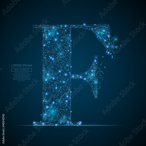The watermark will not be included on Canvas Print.: Abstract image of the letter f of a starry sky or space, consisting of points, lines, and shapes in