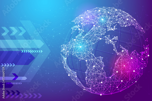 The watermark will not be included on Canvas Print.: Abstract image planet earth in the form of a starry sky or space, consisting of points, lines, and s