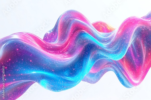 The watermark will not be included on Canvas Print.: Abstract iridescent wave with glowing particles on a white background -
