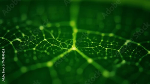 Canvas Print : Abstract leaf vein network seamlessly looping with intertwining green lines and subtle light corpora