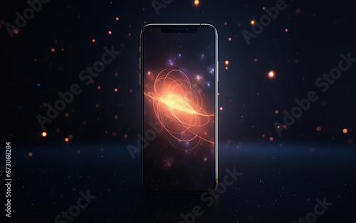 The watermark will not be included on Canvas Print.: Abstract light spots lines and mobile phone,created with generative ai tecnology -