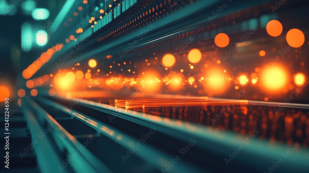 The watermark will not be included on Canvas Print.: Abstract light trails with glowing bokeh effect in background