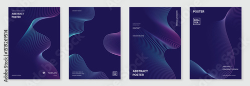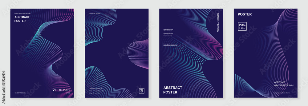 The watermark will not be included on Canvas Print.: Abstract line wave gradient poster background vector set - minimalist cover template with vibrant per