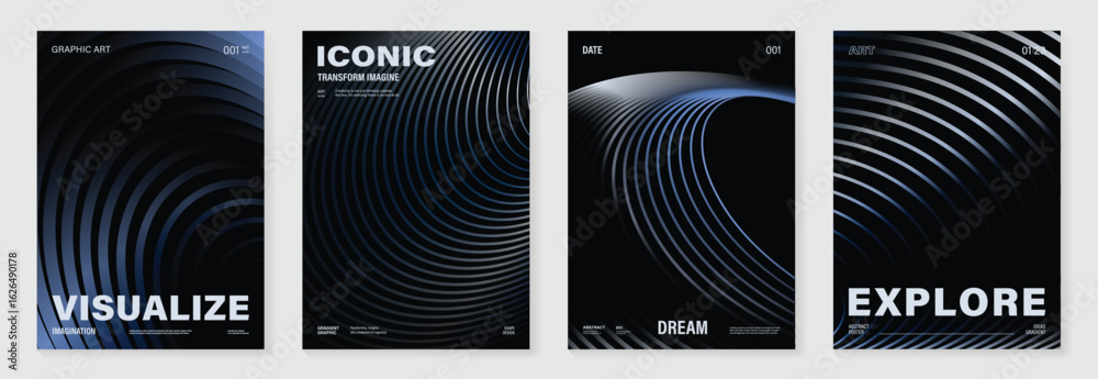 The watermark will not be included on Canvas Print.: Abstract line wave gradient poster background vector set - minimalist cover template with vibrant per