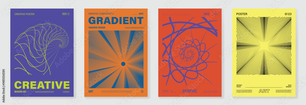 The watermark will not be included on Canvas Print.: Abstract line wave poster background vector set - cover template with vibrant perspective line wave -