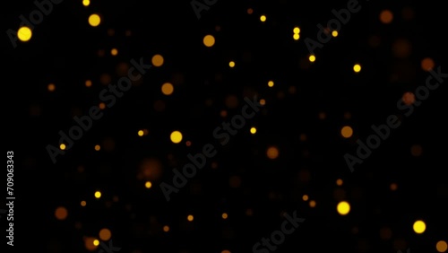 The watermark will not be included on Canvas Print.: Abstract loop animation flickering glow gold bokeh bubble particles flying on black background - 4k 3