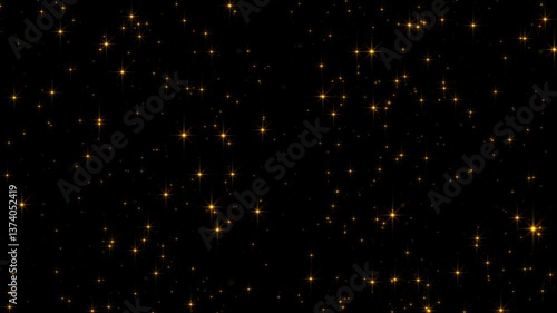 The watermark will not be included on Canvas Print.: Abstract loop animation flickering glow gold star particles flying on black background - 4k 3d seamle
