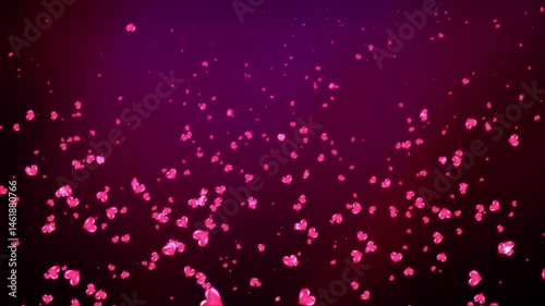 The watermark will not be included on Canvas Print.: Abstract loop flow up pink red hearts animation on black background - animation for valentine day, bi