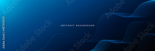 The watermark will not be included on Canvas Print.: Abstract modern blue gradient background with glowing flow wavy lines - futuristic technology concept