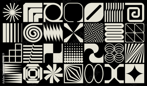 The watermark will not be included on Canvas Print.: Abstract monochrome geometric vector shapes and figures, set of various brutalist and modernist elem
