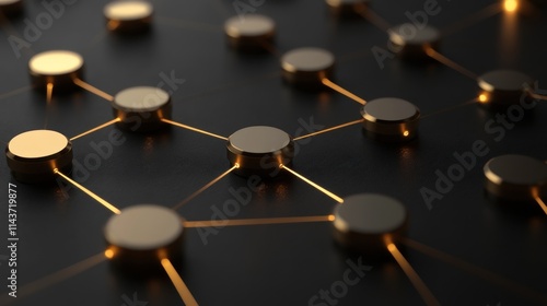 Canvas Print : Abstract network of gold nodes and connections on a dark background -