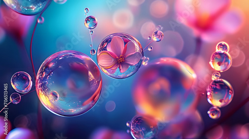 Canvas Prints abstract pc desktop wallpaper background with flying bubbles on a colorful background. aspect ratio