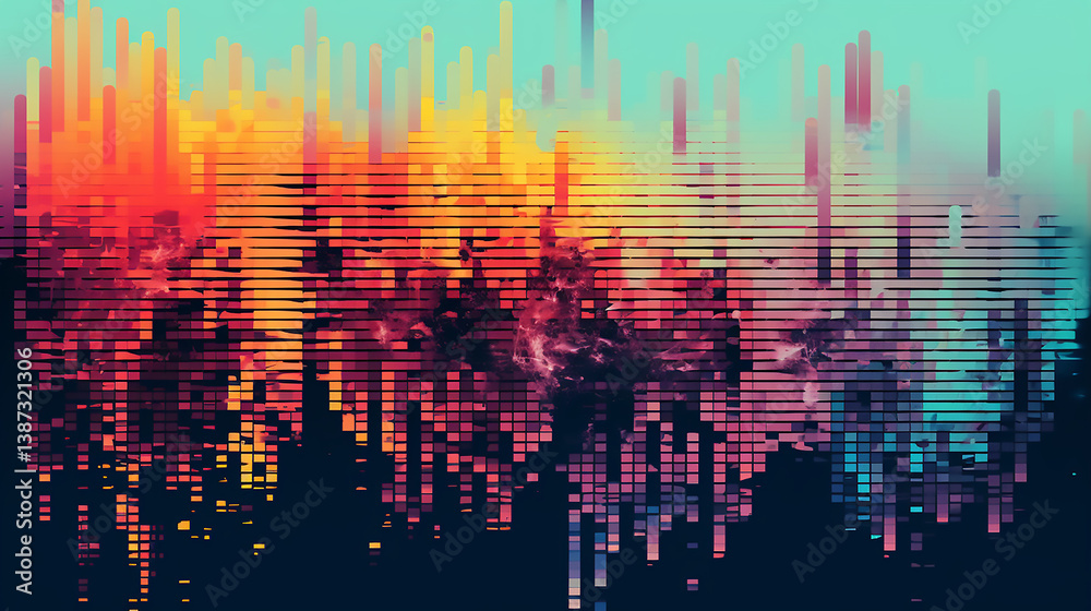 Canvas Print : Abstract pixel art abstract pattern of digital pixels and glitch effect for a tech-themed backdrop b