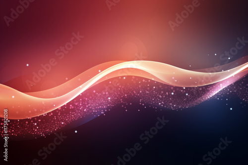 The watermark will not be included on Canvas Print.: Abstract red background with waves, a vibrant vector illustration of glowing stars and lines in spac