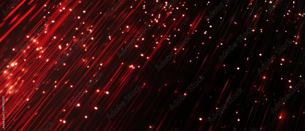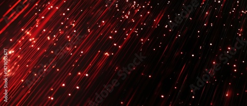 The watermark will not be included on Canvas Print.: Abstract red light streaks in motion with sparkling particles dark background close up futuristic de