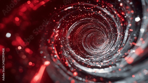 The watermark will not be included on Canvas Print.: Abstract red vortex tunnel background with light and motion, a futuristic technology design element