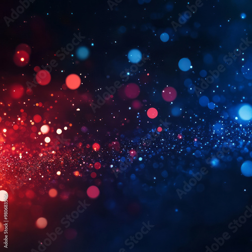 The watermark will not be included on Canvas Print.: Abstract red white and blue background with bokeh lights, red blue sparkle on dark background --v 6 -