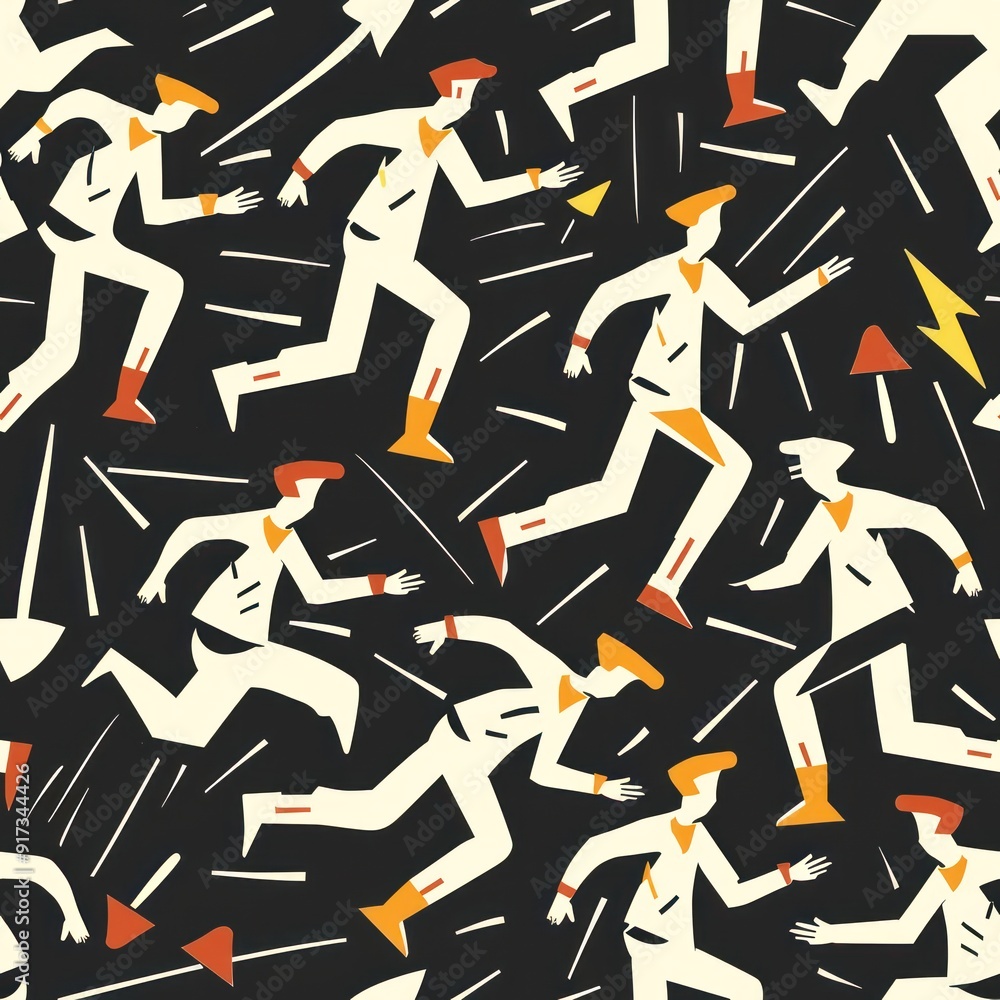 The watermark will not be included on Canvas Print.: Abstract running people pattern -