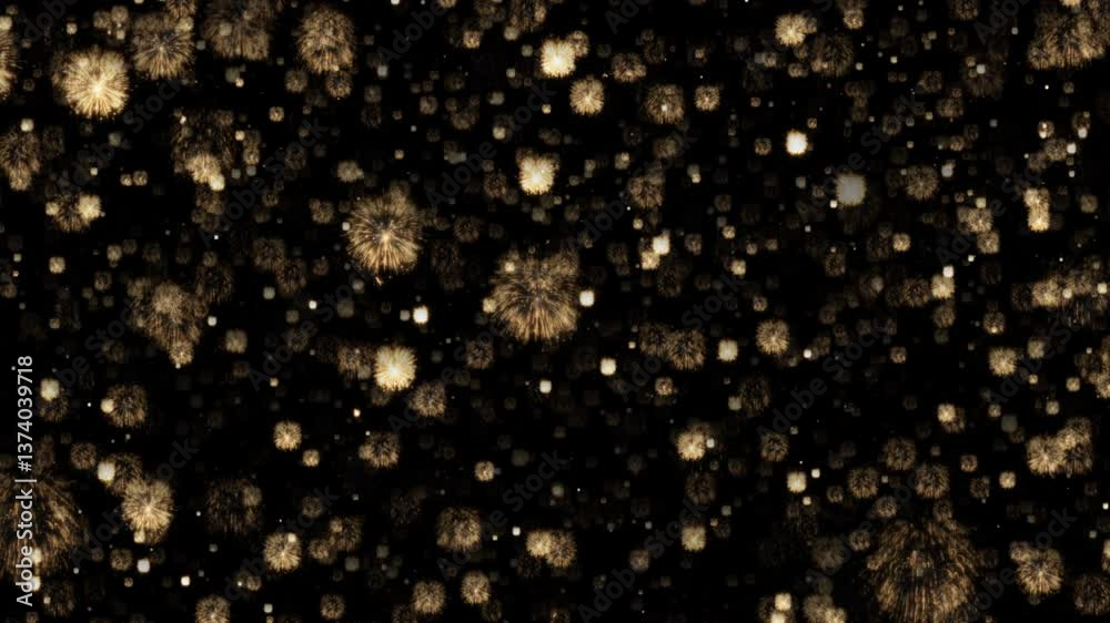 The watermark will not be included on Canvas Print.: Abstract seamless loop beautiful many spark gold fireworks particles texture animation effect on bla