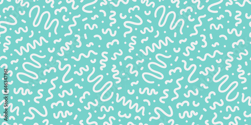 The watermark will not be included on Canvas Print.: Abstract seamless pattern of the 80s 90s with geometric figures and doodles - vector childrens backgr