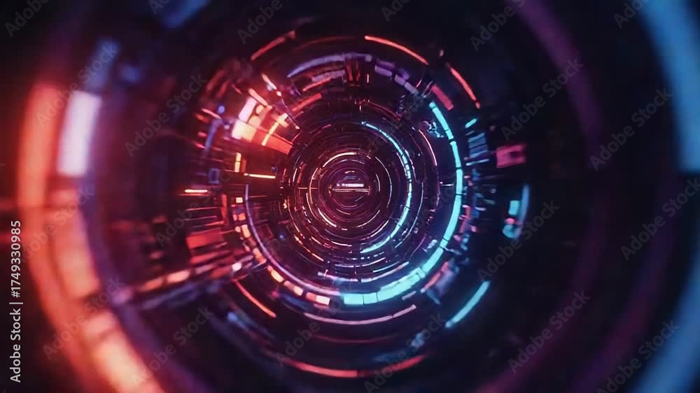 The watermark will not be included on Canvas Print.: Abstract speed light traveling digital data tunnel