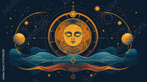 The watermark will not be included on Canvas Print.: Abstract sun and moon forming a balance with a sleeping figure representing the importance of a well