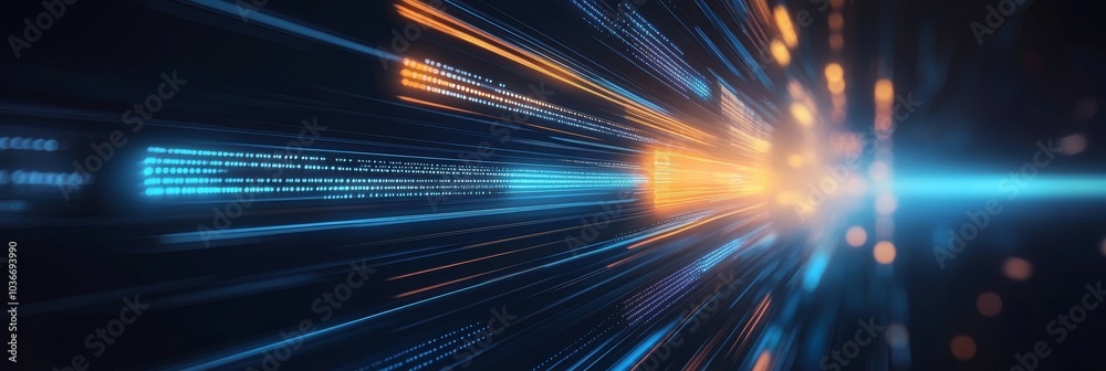 Canvas Prints abstract tech background, blue and orange lights, blur, data stream, cybersecurity, binary code.